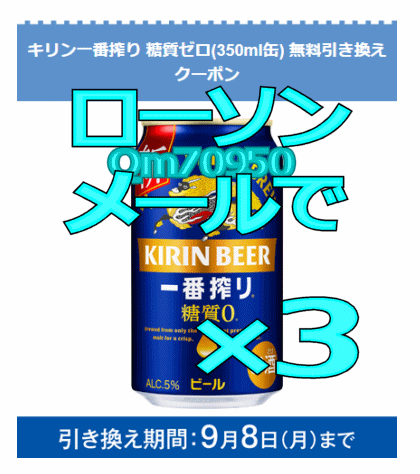 【3個】(要メールアドレス) キリン 一番搾り 糖質ゼロ 350ml缶 クーポン 無料引換券 送料無料