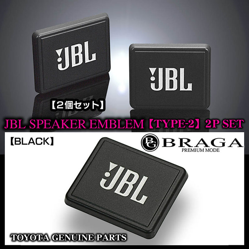 トヨタ純正《JBL/ブラック》ジェイビーエル スピーカーエンブレムプレート《タイプ2》2個セット【両面テープ止め】ABS樹脂/ブラガ