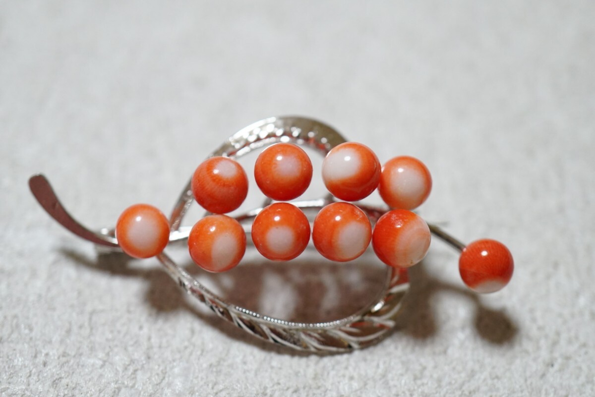 Product name: 747 天然珊瑚 ブローチ ヴィンテージ アクセサリー SILVER刻印 冠婚葬祭 コーラル サンゴ さんご 装飾品