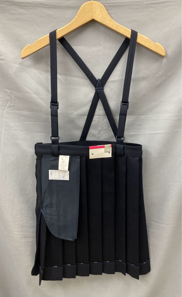 ス-65 制服 スカート 140 A サイズ ネイビー 紺色 スクール ユニホーム 学生服 肩紐付 プリーツ スカート YKK ファスナー