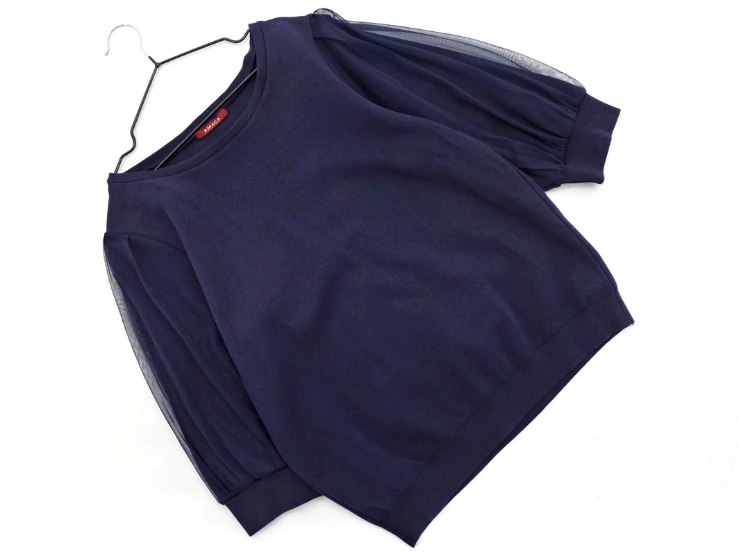 ネコポスOK AMACA アマカ ボリュームスリーブ カットソー size38/紺 ◇■ ☆ fib8 レディース