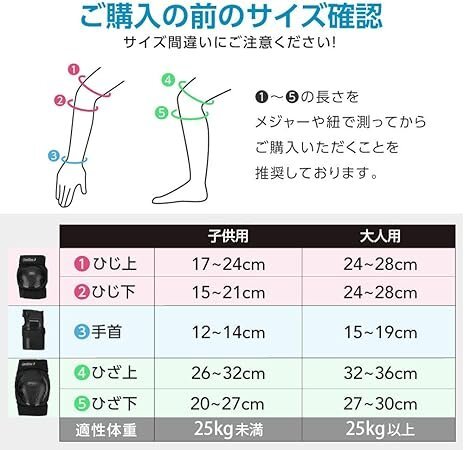 Product name: プロテクター キッズ 子供 大人用 手首/肘/膝 6点セット 自転車 スケボー バイク MM0462