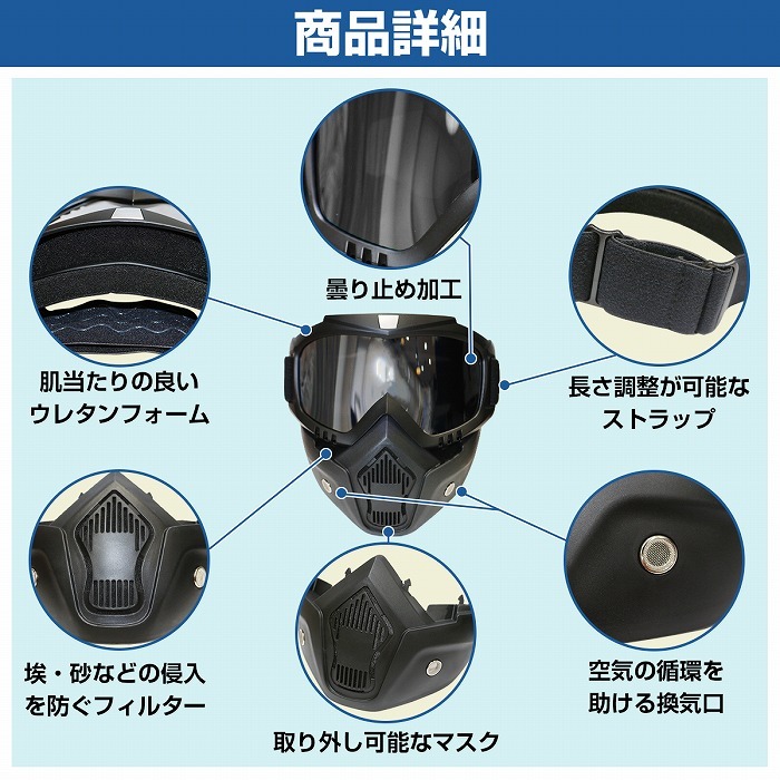 ゴーグルとマスク(マウスプロテクター)は取り外し可能なのでゴーグル単体でも使用可能。