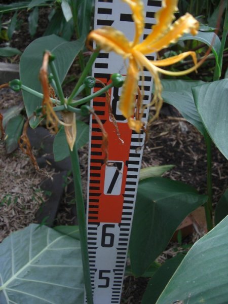 茎までの長さ80㎝にもなり過去最高、花頂上までは90㎝にまで育ちました。特大球根です。物差し写真参照下さい。