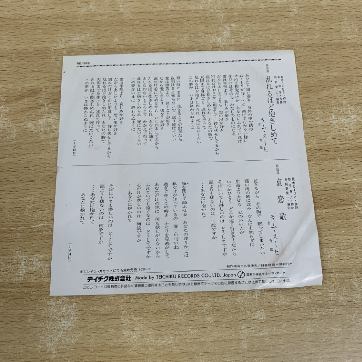 Product name: ●01)【1点限り!】【見本盤】金秀姫/乱れるほど抱きしめて/キム・スーヒ/EPレコード/7インチ/サンプル/プロモ/RE-919/A