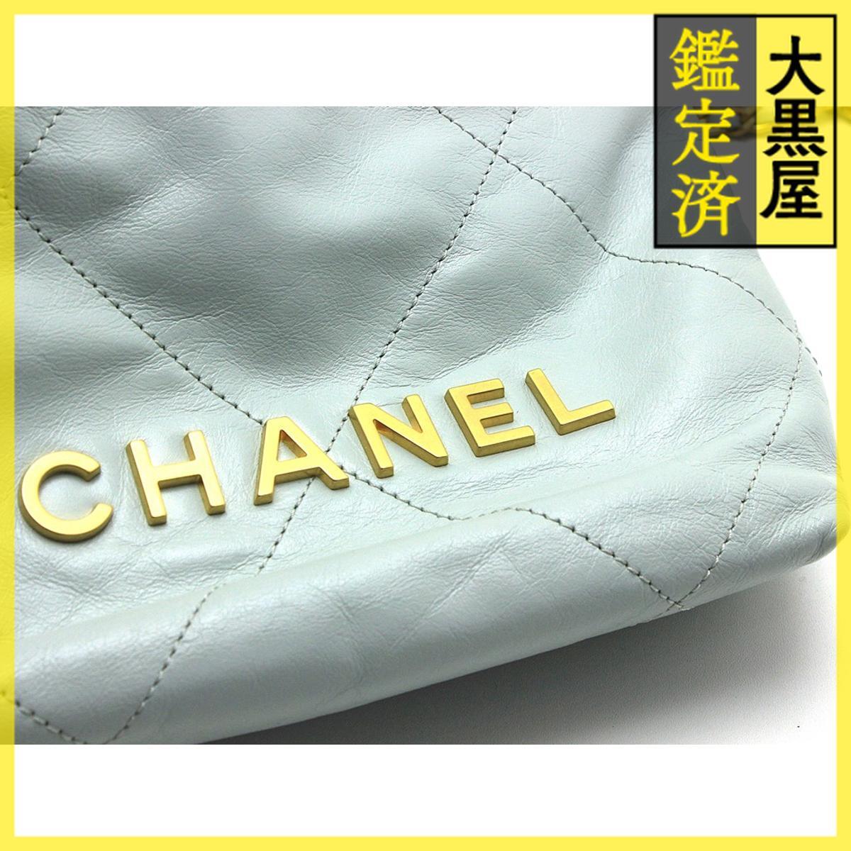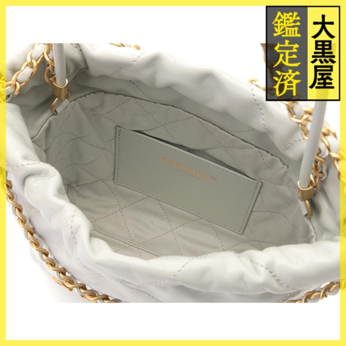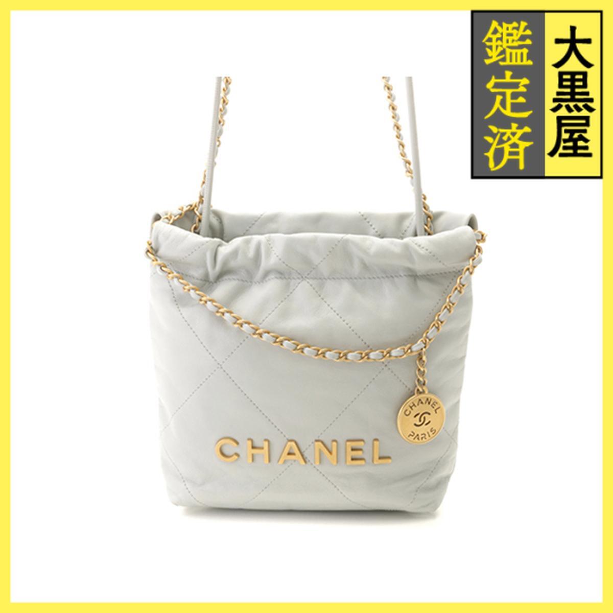 CHANEL シャネル CHANEL22 ミニハンドバッグ ライトグレー/ゴールド金具 シャイニーカーフ AS3980