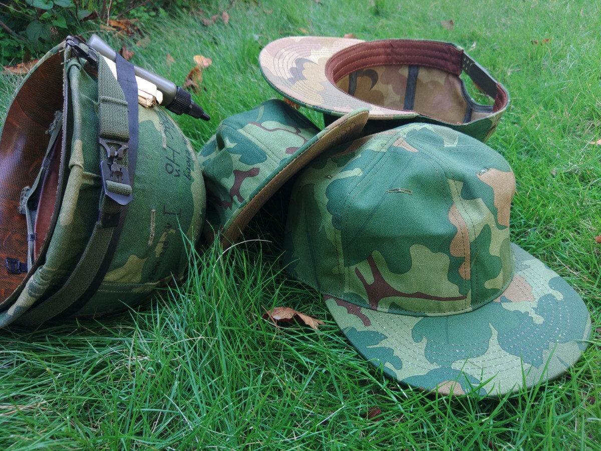 コアなミリタリーマニアでなくとも、ベトナム戦時代の歩兵M1ヘルメットを代表するこのミッチェルパターンは知る人ぞ知るカモフラであり、ヘルメットカバーへの落書き(トレンチアート)は戦後アメリカの若者によるグラフィティカルチャーの元祖になったとも言われています。