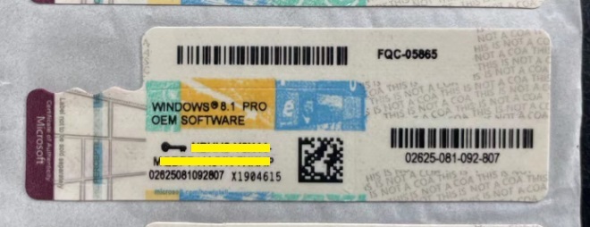 Product name: Windows 8.1 Pro OEM プロダクトキー COA