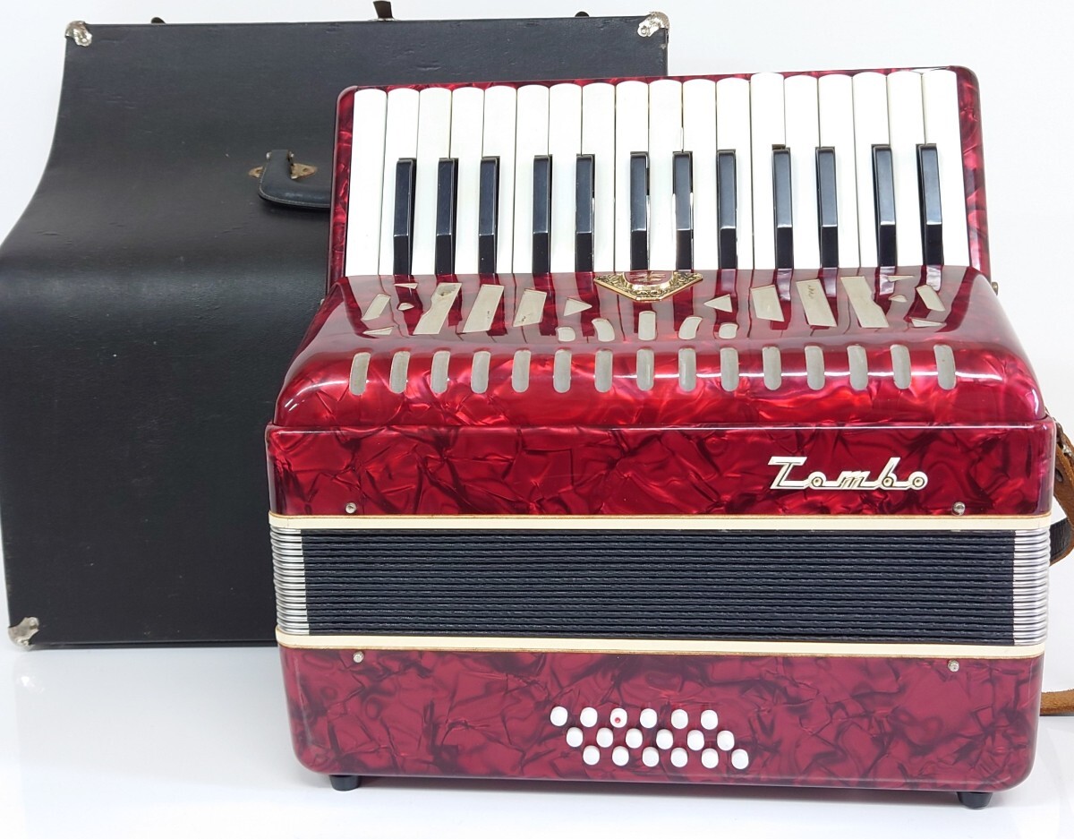 Tombo アコーディオン No.181 トンボ accordion 本体 30鍵盤 レッド 鍵盤楽器 ハードケース付 音出しOK