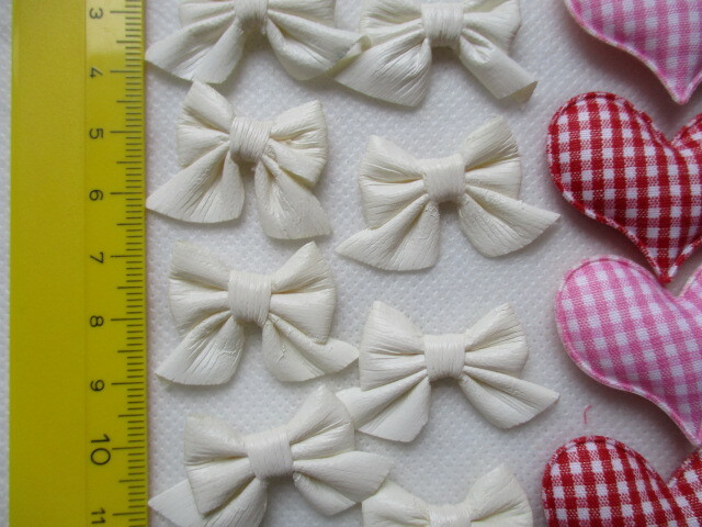 Product name: R61◆チェックHeartクッションMotif 14個・リボン型ホワイトmotif 14個