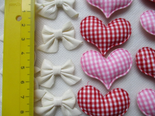 R61◆チェックHeartクッションMotif 14個・リボン型ホワイトmotif 14個