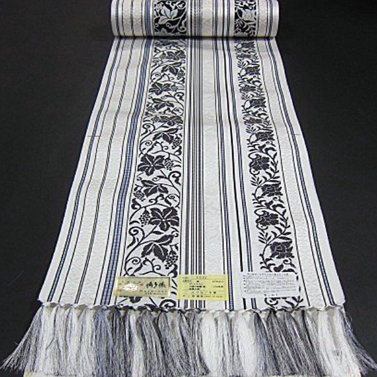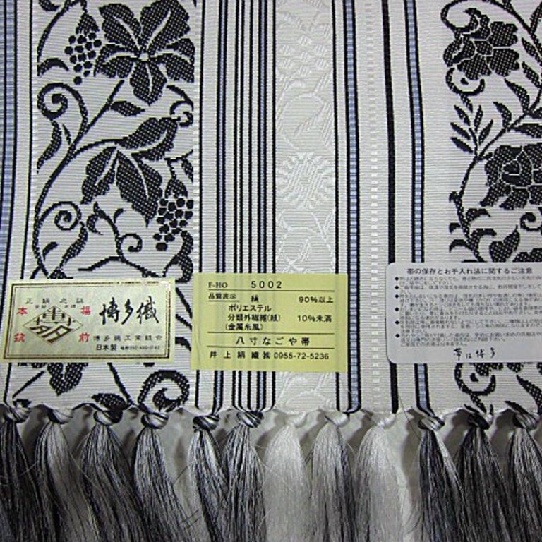 Product name: 逸品 新品未仕立 正絹 本場筑前博多織八寸名古屋帯 白・黒 お稽古事、観劇、芸術鑑賞、ショッピング、お出掛け等に