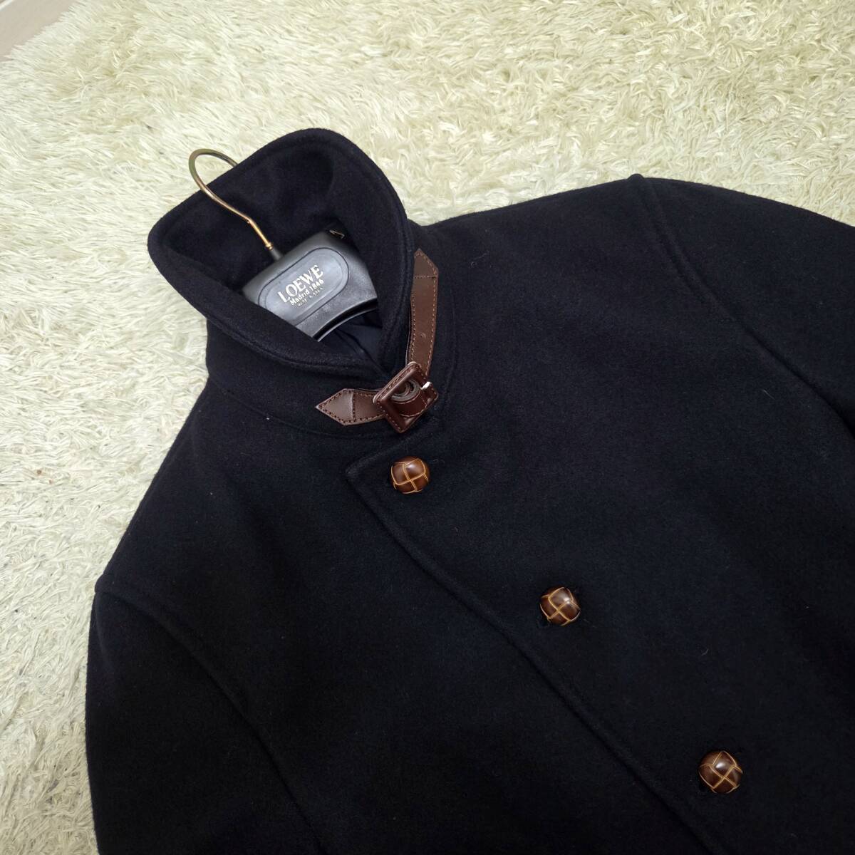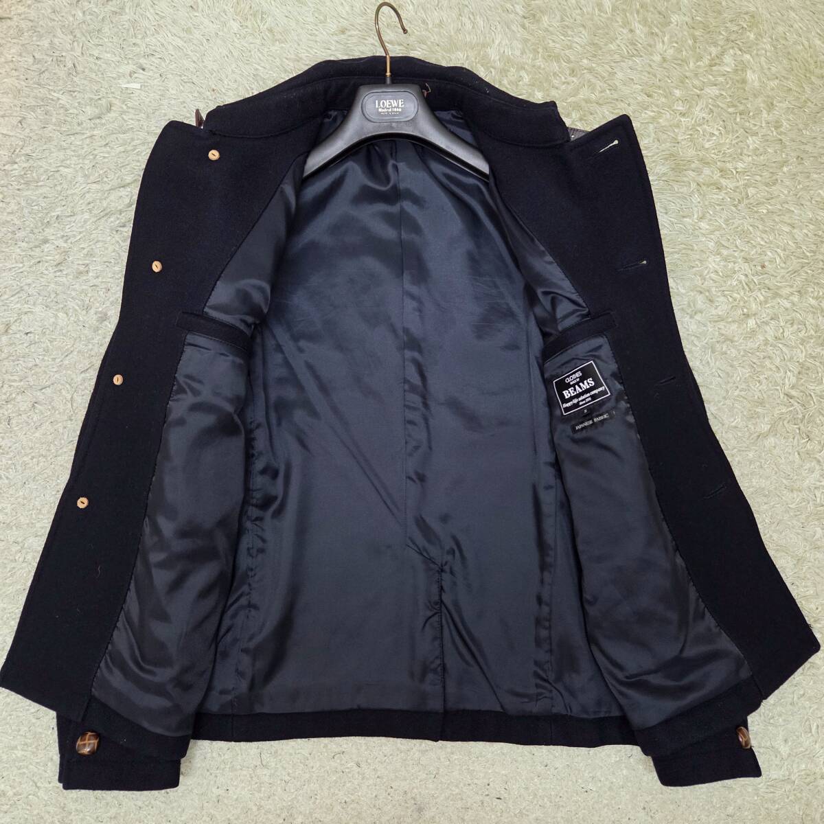Product name: ビームス【大人のお洒落】BEAMS ジャケット ピーコート Pコート アウター 羽織 ウール 牛革 襟ベルト くるみボタン調 ブラック 黒 S
