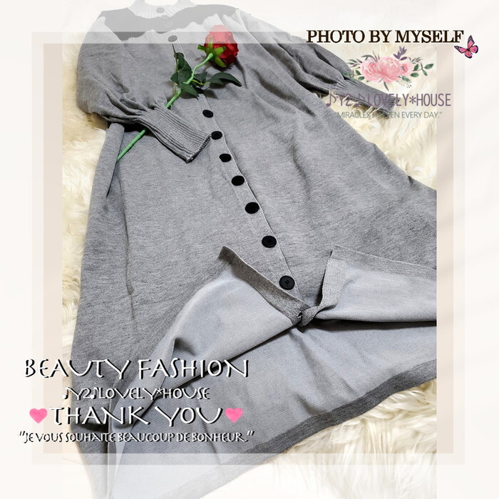 Product name: ■~3L4L*ぽわん袖スタンドリブネック前ボタンニットワンピース
