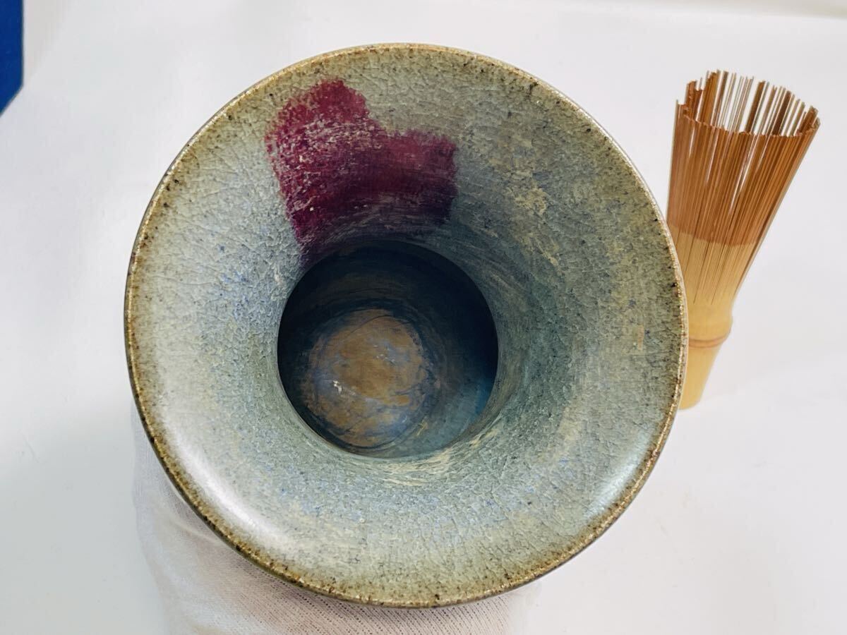 【B237】鈞窯 紅斑 花器 共箱付 壺 壷 花瓶 花入れ 花器 花道具 德利 陶磁器 賞物 置物 飾り インテリア 時代物 中国古美術