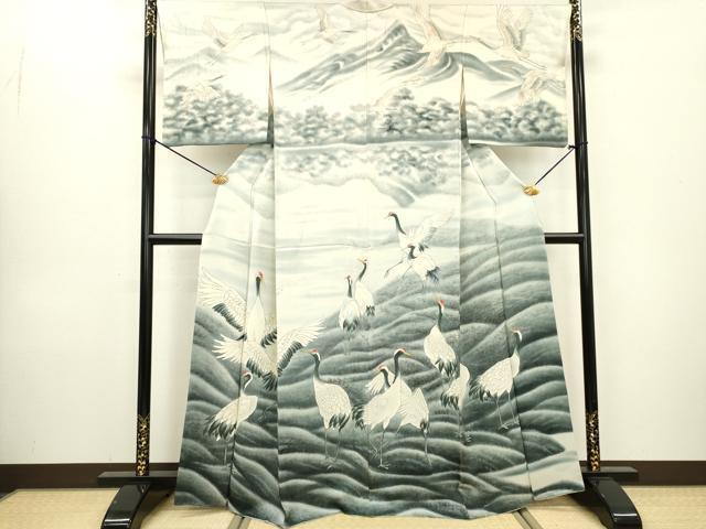 Product name: 平和屋着物▼訪問着 作家物 手描き 群れ鶴 暈し染 正絹 逸品 DAAX9160fe