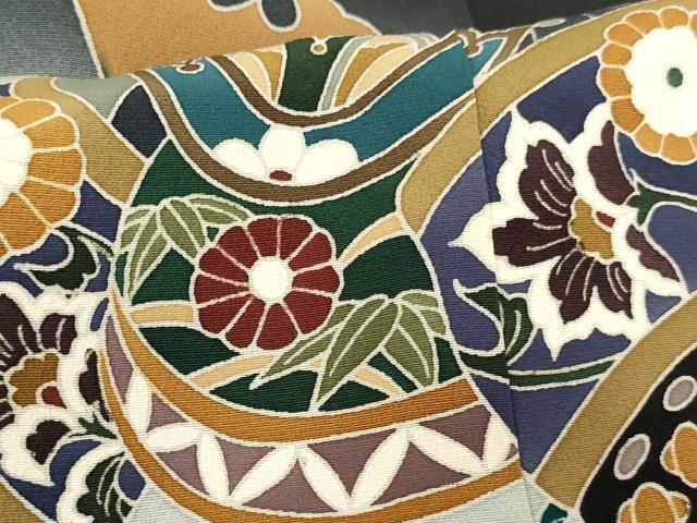 着物【正絹・五つ紋】の状態は接写画像のように上前に薄い汚れ、両袖前・胴裏に汚れがございますが