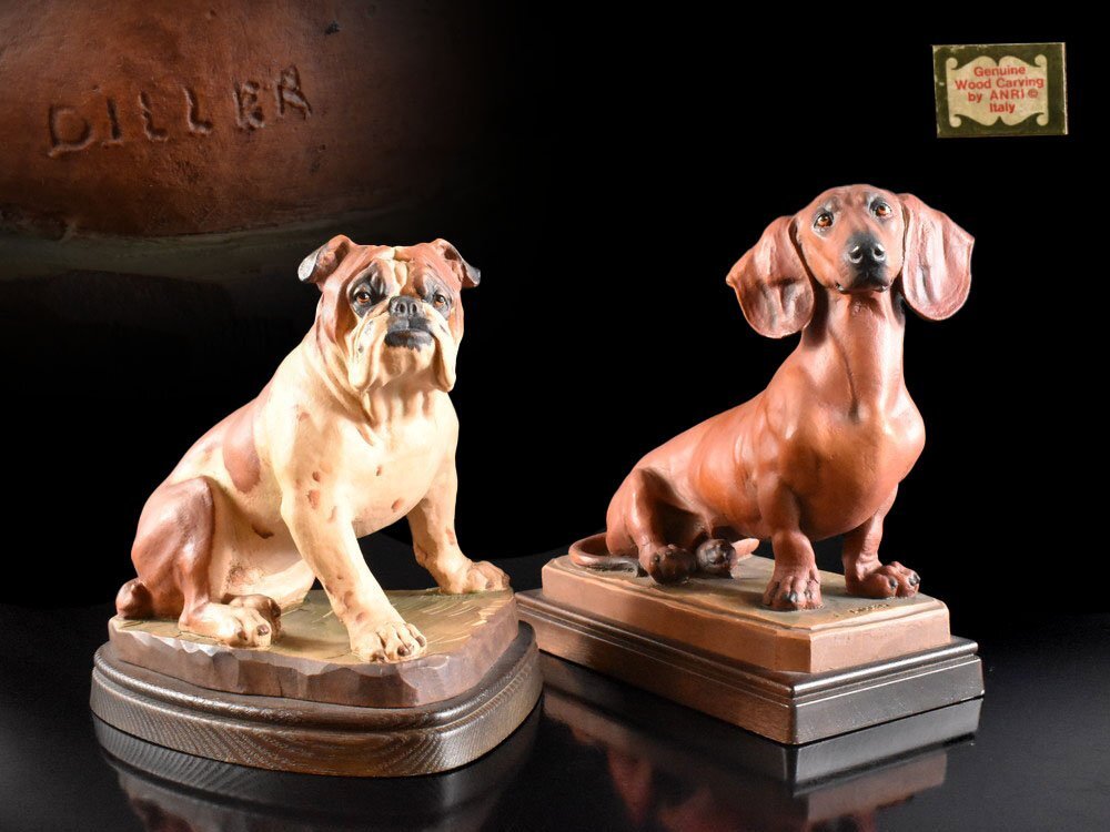 商品名 【雲】某コレクター買取品 ANRI アンリ 木彫 ブルドッグ ダックスフント 犬像 人形 置物 古美術品(イタリア オブジェ)Y7002 LTxdsw
