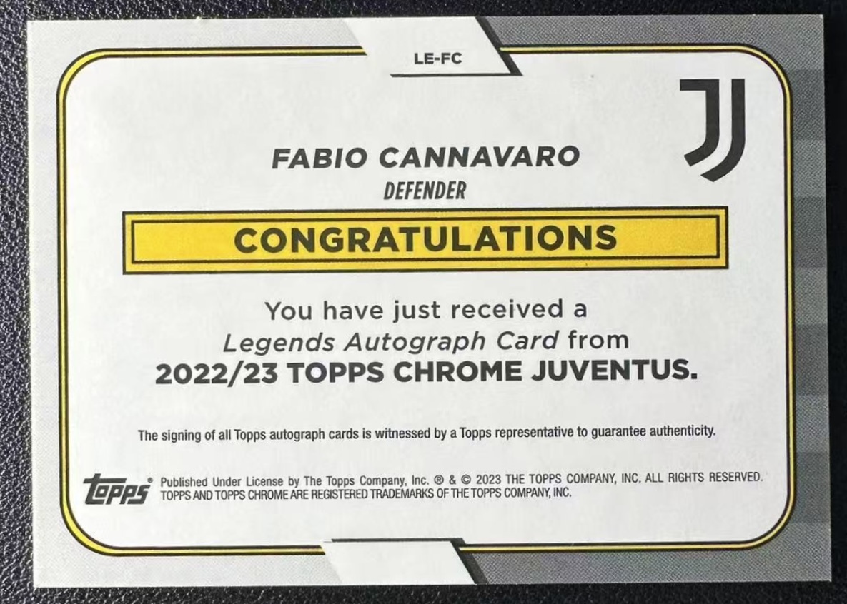 Product name: 【50枚限定】Fabio Cannavaro カンナバーロ Topps Chrome UEFA 2022-2023 /50 Auto サイン 直筆 Juventus