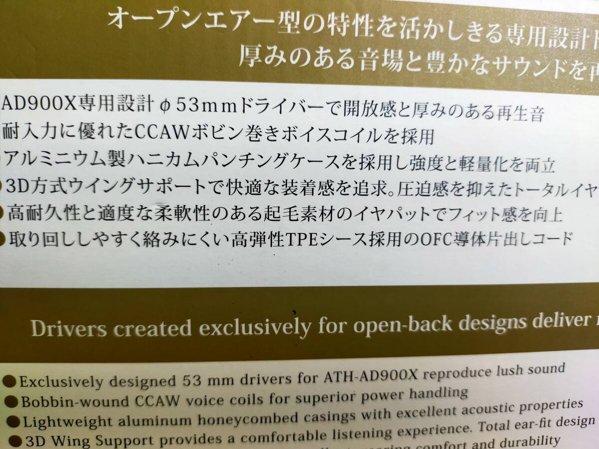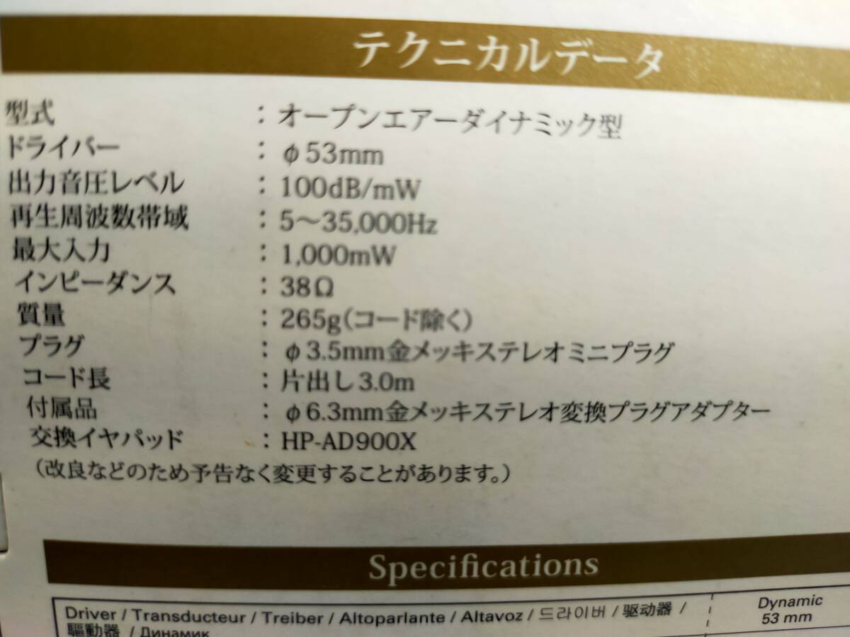 ATH-AD900X 開放型ヘッドホン 正常作動 使用頻度が極端に少ないので、キズ、スレ、汚れ全て無く、とても綺麗です、イヤーパットも綺麗ですコードがよじれ音が途切れることがあり、よじれ防止に鉄線で固定、ビニールテープを巻きました、音はとぎれることは無く、正常に聴こえます、