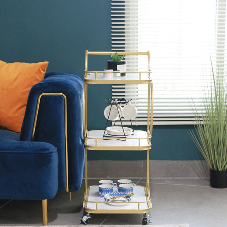 ラグジュアリー ワゴン テーブル 3層カート 金 ゴールド キャスター付き サービスワゴン キッチンワゴン 高級感 サービング用 おしゃれ