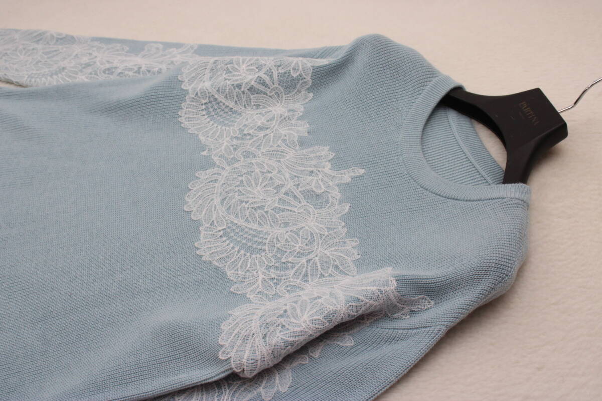 Product name: 5678 新品 刺繍入りニットプルオーバー ライトブルーFサイズ