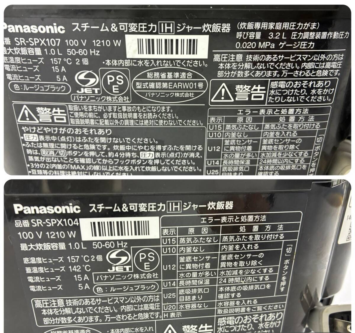 Product name: PANASONIC SR-SPX104 SR-SPX107 スチーム&可変圧力IHジャー炊飯器 Wおどり炊き ジャンク品2台セット SA-0789-0815