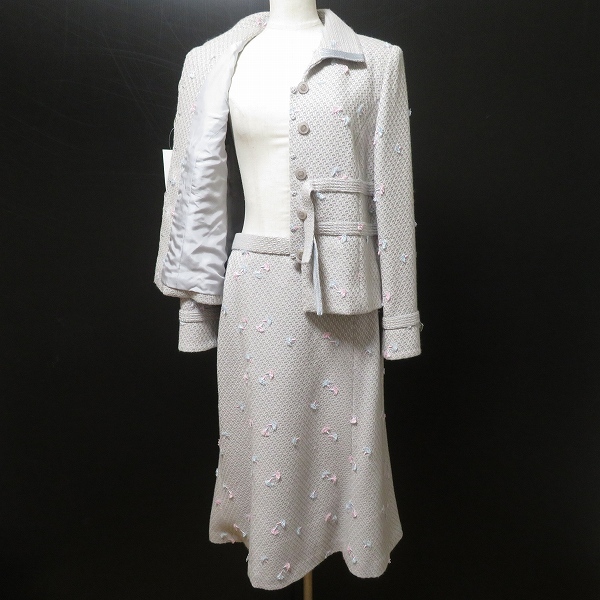 Product name: #wnc スズキノリオ Suzuki Norio スカートスーツ セットアップ 薄紫 白系 オートクチュール ツイード 刺繍 レディース [965653]
