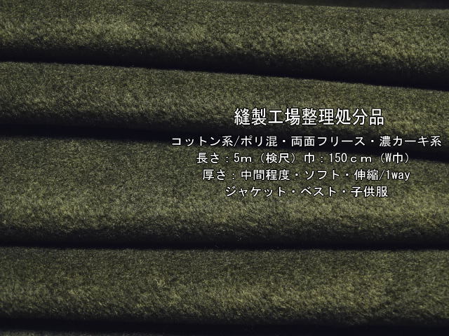 Product name: ポリ/レーヨン混 両面フリース 中間 ソフト 濃カーキ系 5m W巾
