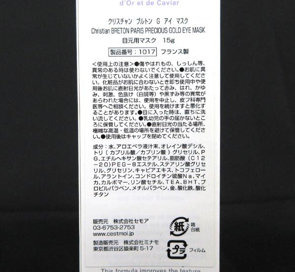 Product name: 送料185円■jz237■(1010)▼クリスチャン ブルトン G アイ マスク 目元用マスク 11000円相当【シンオク】【クリックポスト発送】