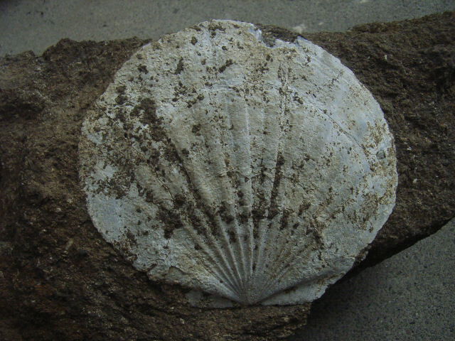 掛川動物群の代表種であるモミジツキヒの、ひと昔古いタイプのイイトミモミジツキヒです。腹縁に若干のチップはありますが、両耳がきれいに保存された個体です。場所によっては多産しますが、まあ、うまく割れてくれません。たいていは現場で泣き別れです。これは採集に行った人でないとわからない表現ですが、ここまできれいに出せるのは至難の業です。アムシオペテンは南方系のイタヤガイとされており、同時代に生息したミズホぺクテンとはほとんど共産しません。大きな母岩についていますので、展示陳列向きの標本です。産地を記したラベル付きです。ノークレーム ノーリターンでお願いいたします。