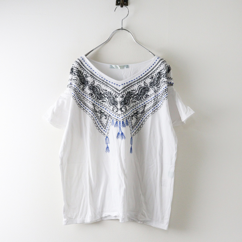 Product name: 大きいサイズ アズノゥアズオオラカ AS KNOW AS olaca バンダナ刺繍クールTシャツ 15\ホワイト コットン カットソー【2400014659016】