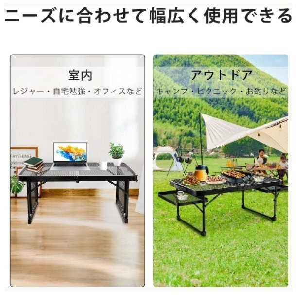 Product name: ャンプ テーブル メッシュ アウトドアテーブル 折り畳み サイドテーブル付き 軽量 コンパクト ローテーブル 折りたたみ 耐熱 耐重荷50kg