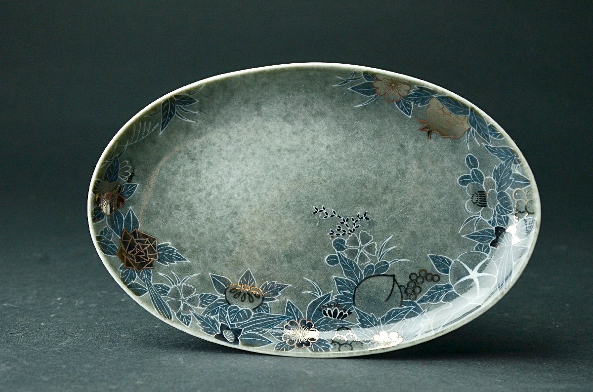 Product name: 【YB】十四代今泉今右衛門『色絵吹墨墨はじき四季花文皿』人間国宝・共箱付属 径19.7cm ★額皿鍋島焼色鍋島絵皿大皿25Y969-1