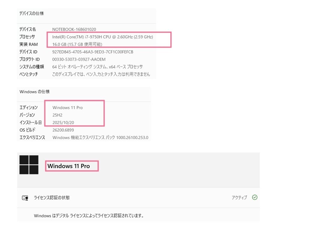 10月20日OS新規  Windows 11 Pro 64bit 25H2