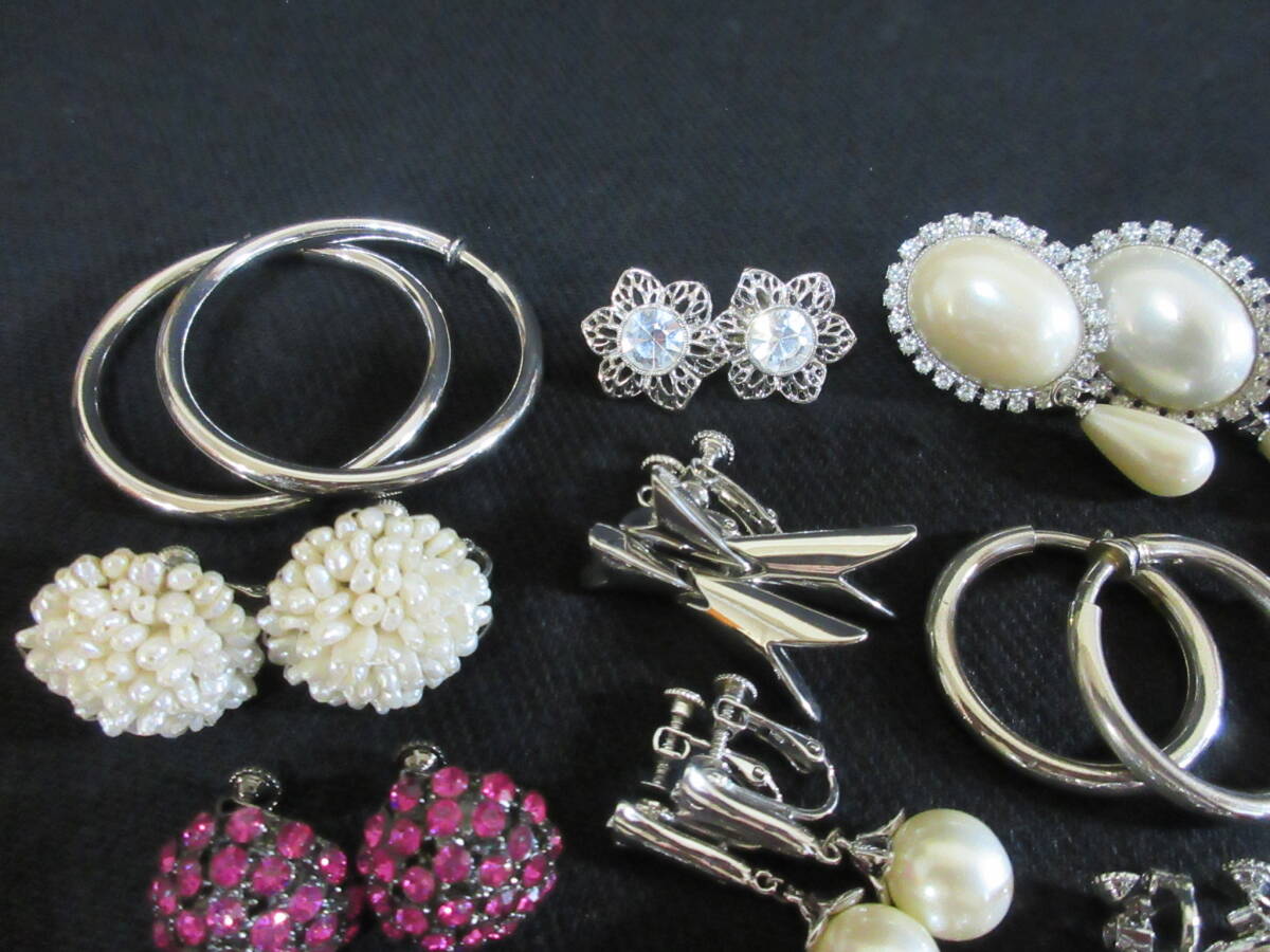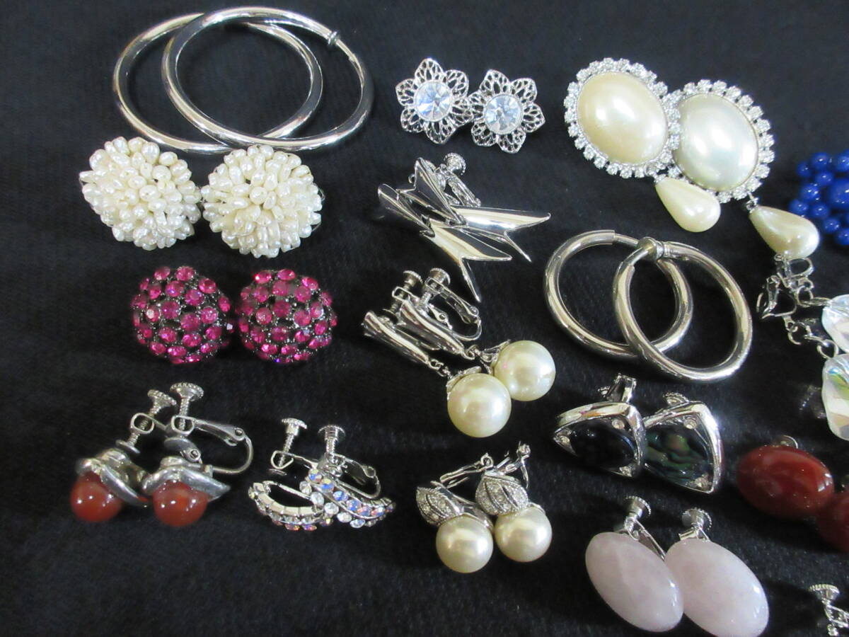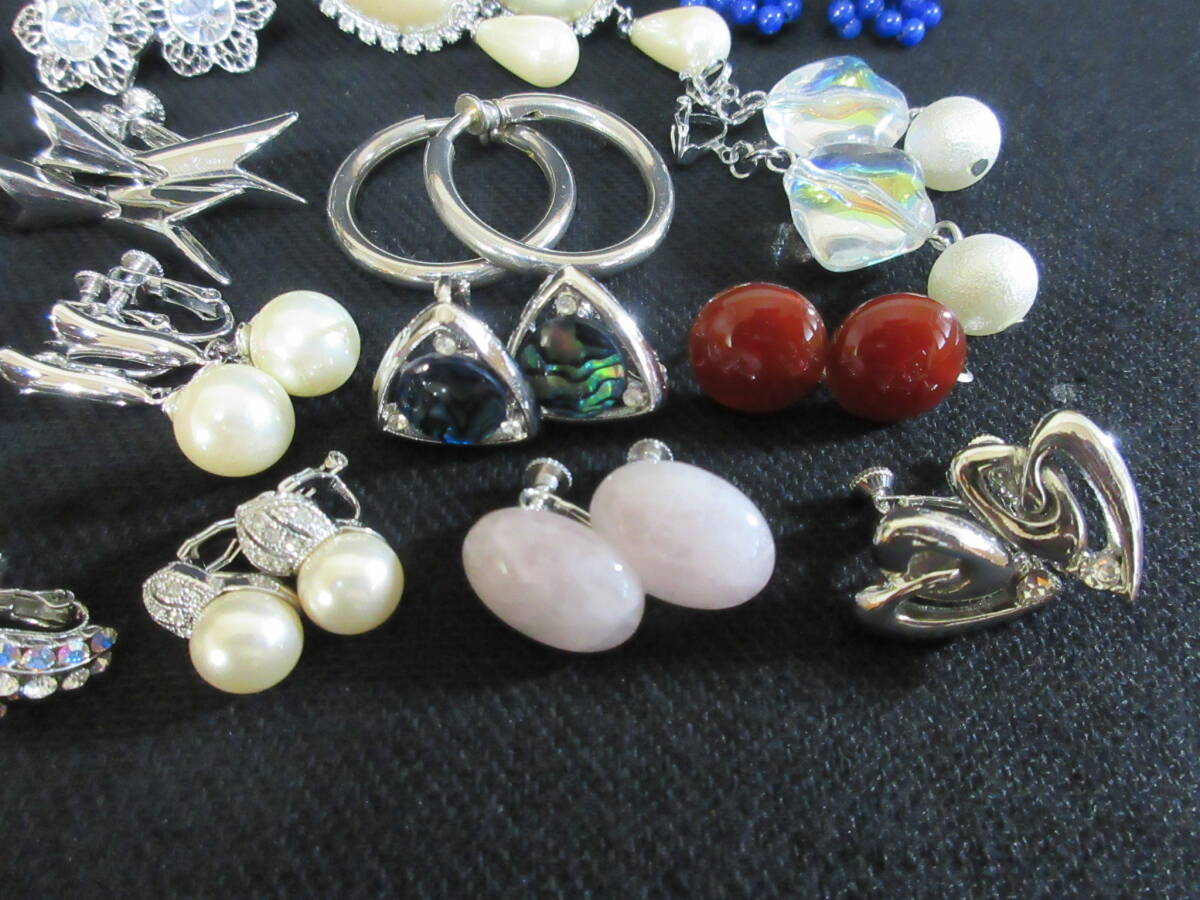 Product name: *100円~【大量】豪華 パワーストーン/シェル/パール/ラインストーン使い シルバーカラー 大きめデザイン イヤリング 17点セット*M-09