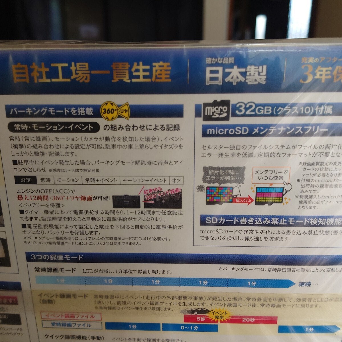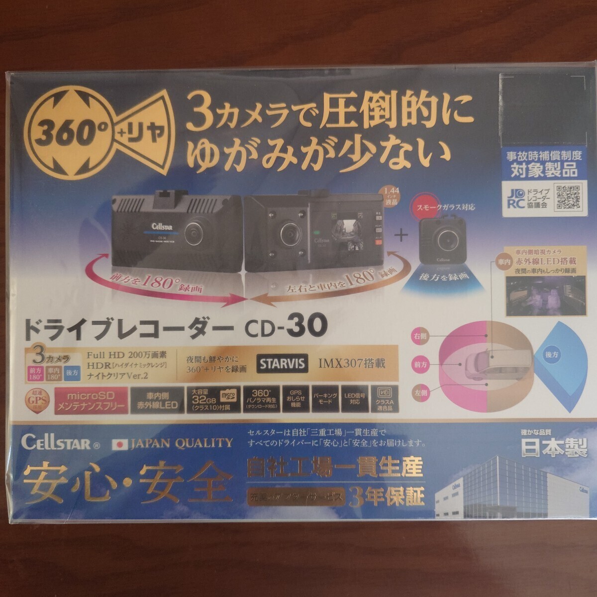 新品未開封Cellstar CD-30 360°+リアカメラドライブレコーダー 全方向パノラマ撮影、今でも使っても性能は高いです。