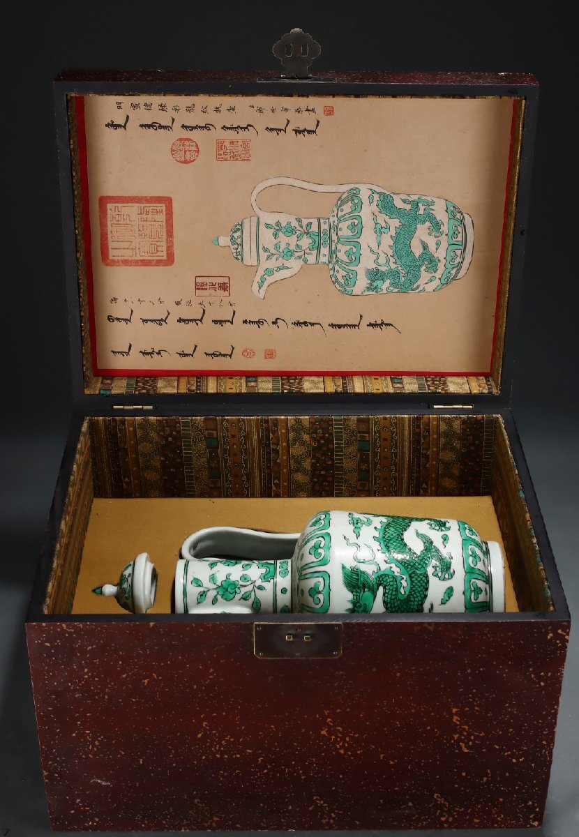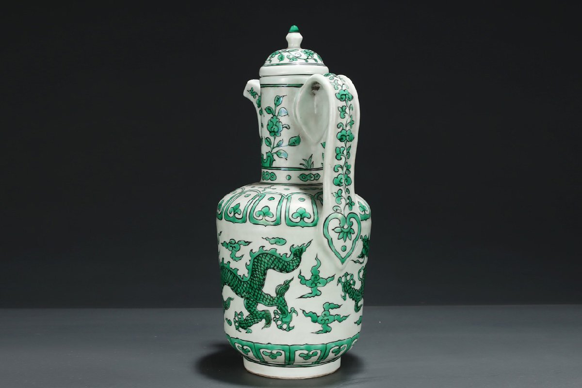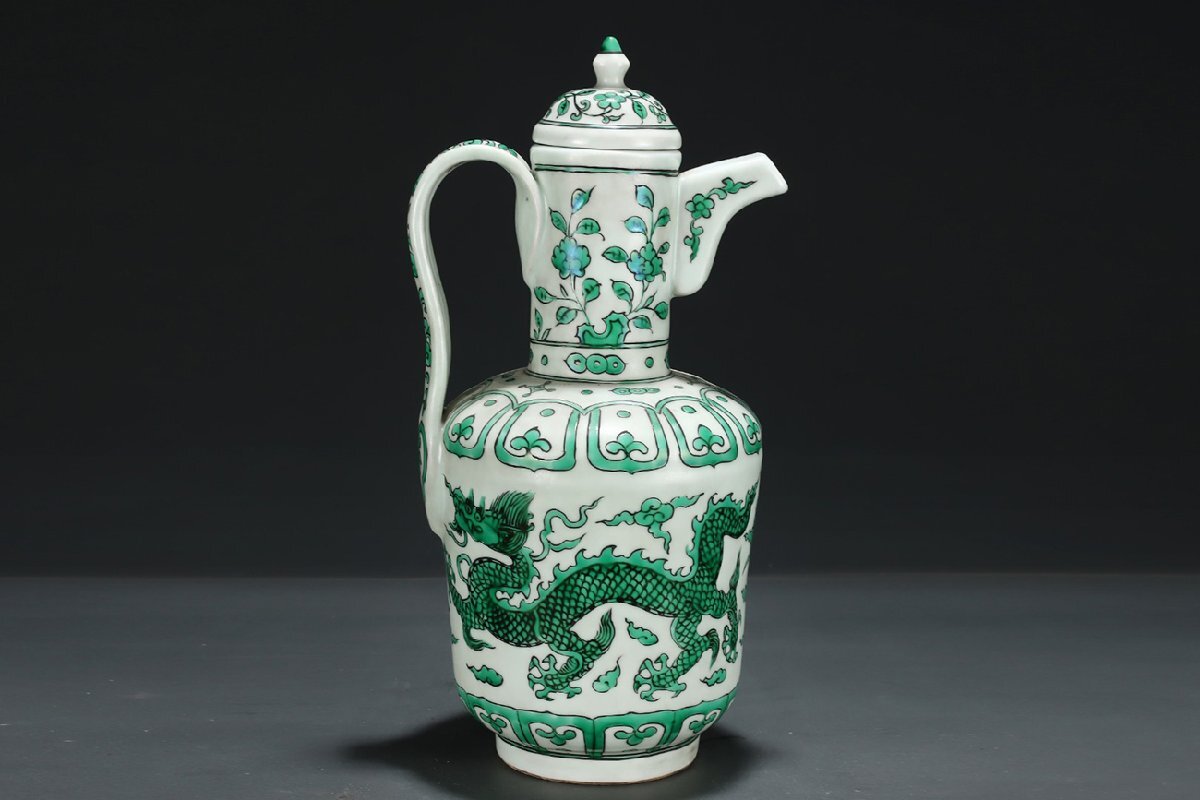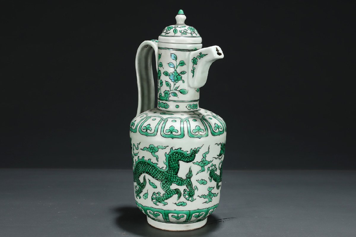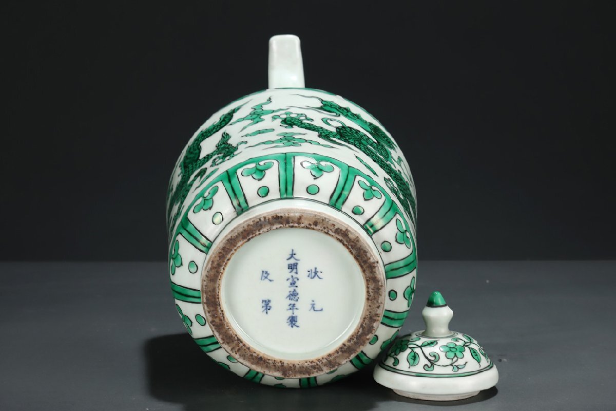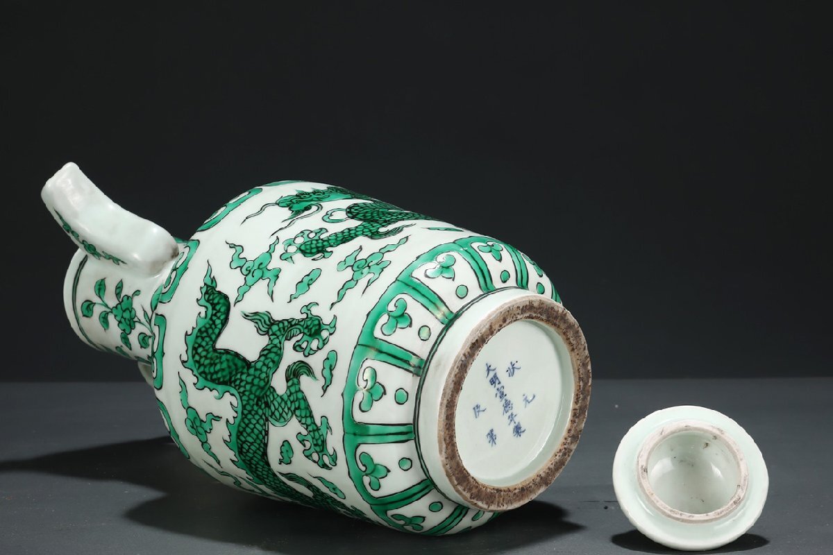 Product name: 【安】明時代 大明宣徳年製 緑彩龍紋執壺 共箱 唐瓷 染付 古陶瓷 中国古美術 古董品 302