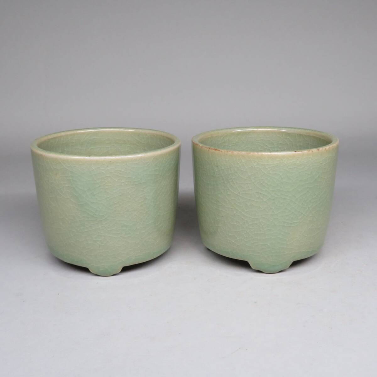 香道家香人の蔵出し ◆青磁菊文【聞香炉】一対 香道具◆ 香木 沈香 伽羅/志野流/御家流/御用達lot:102106