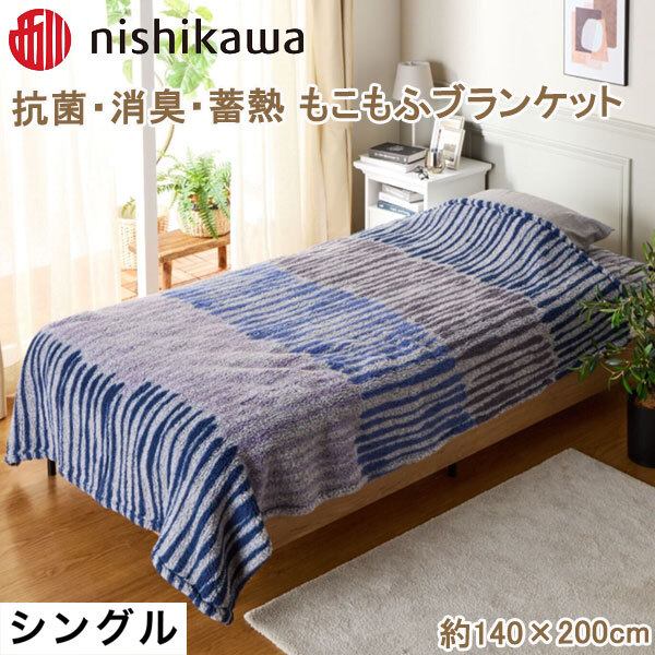 Product name: 送料300円(税込)■mk010■西川 抗菌・消臭・蓄熱 もこもふブランケット S ネイビー 7480円相当(柊)【シンオク】