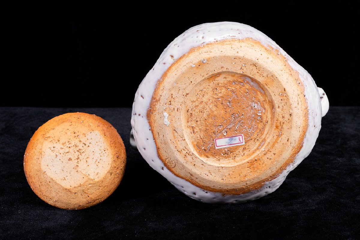 Product name: 【珍品堂】1円から P30-V16 萩焼 耳付 水指 白萩釉薬 壱 共箱 木箱 茶道具 茶器 煎茶道具 陶芸 工芸品 骨董品 古美術