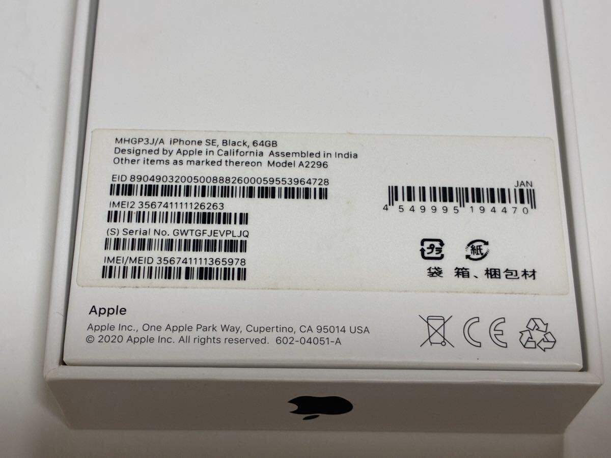 ◯機種 : iPhoneSE 64GB (第2世代) A2296 MHGP3J/A