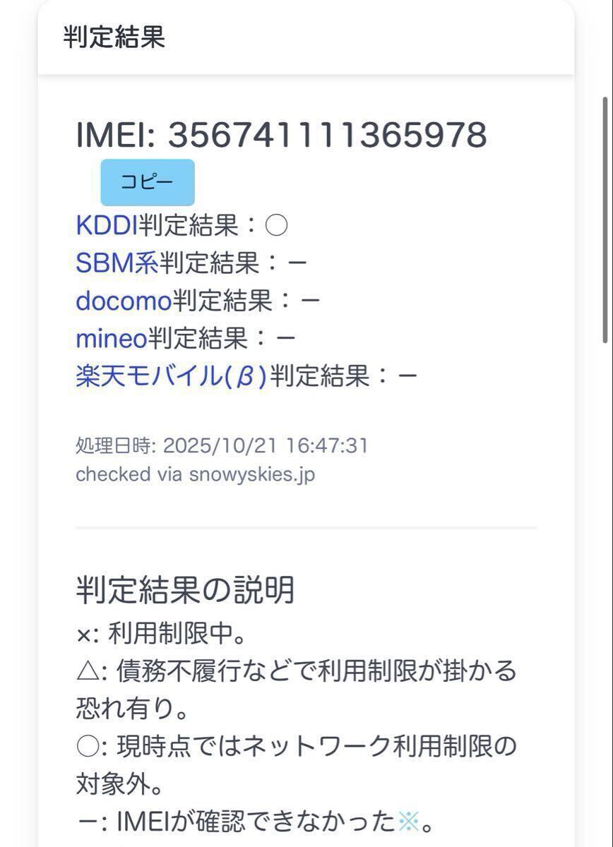 ◯ネットワーク利用制限の状況 : 「ドコモ=‐」 「KDDI=○」 「ソフトバンク=‐」「Rakuten=‐」