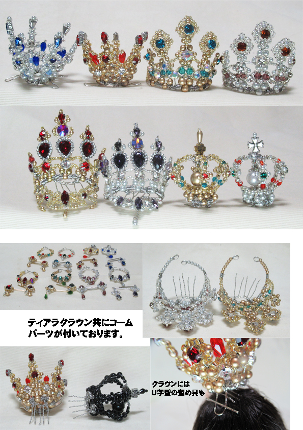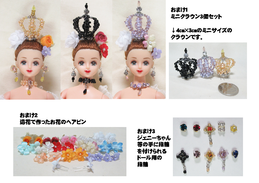 ドールに装着して頂けるティアラやクラウンのアクセサリーセットを