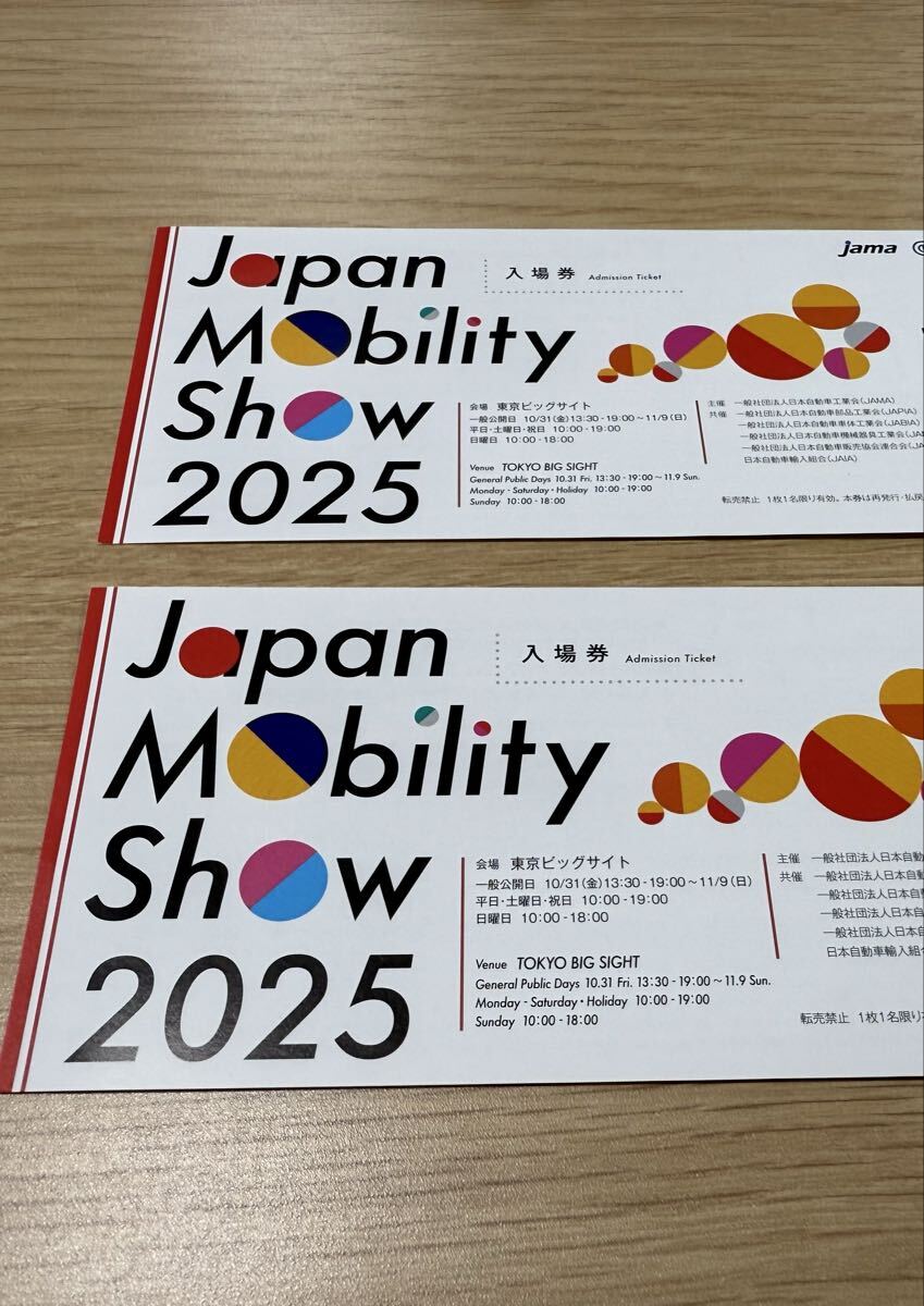 即決 送料無料 2枚セット ジャパンモビリティショー2025 入場券 チケット 2枚 セット Japan Mobility show