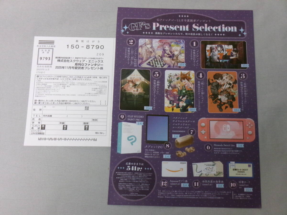 Gファンタジー 11月号 アンケート応募はがき 葉書 ハガキ
