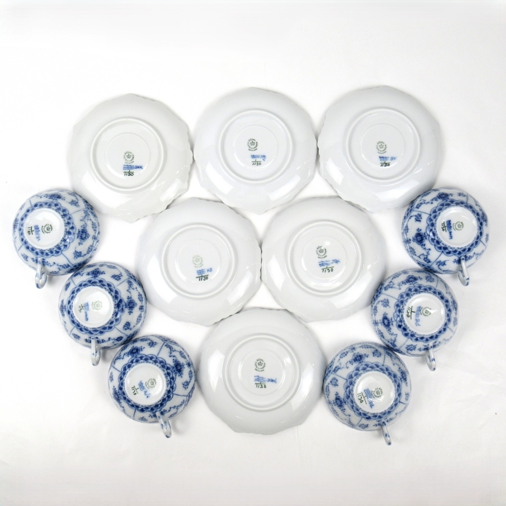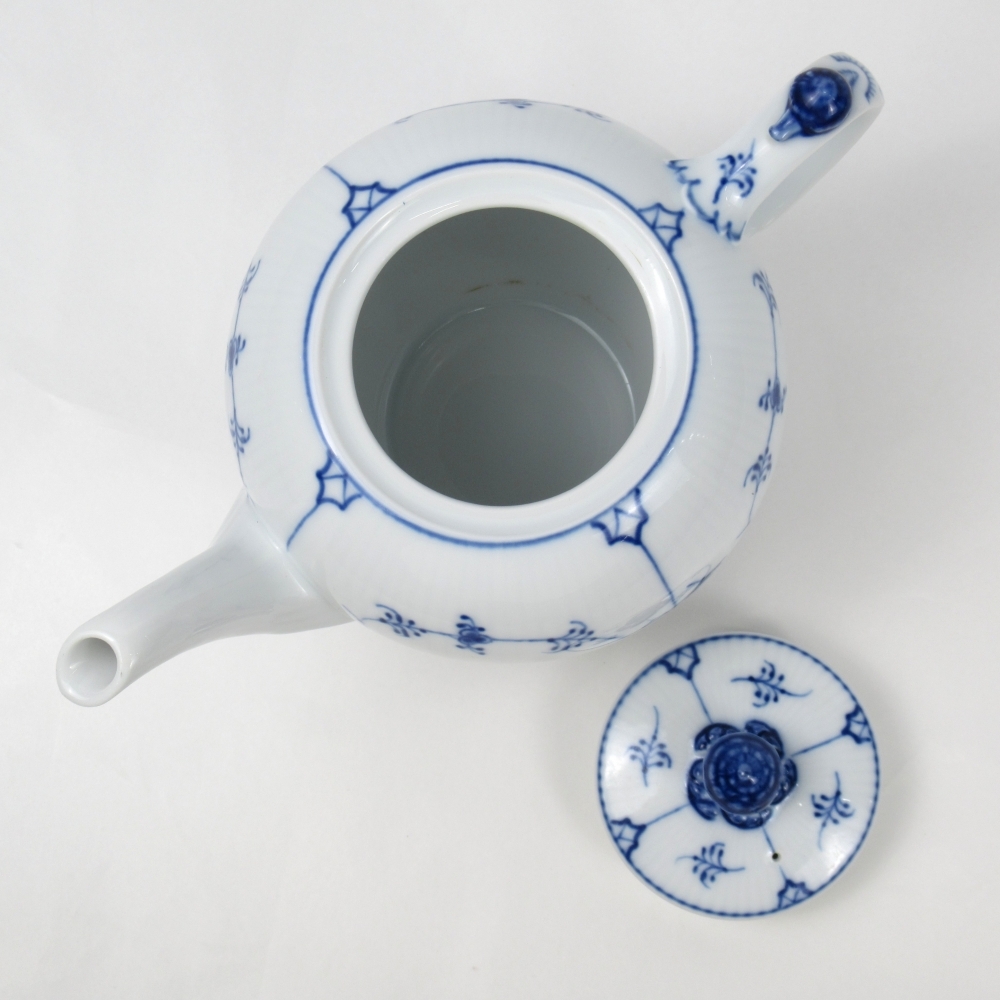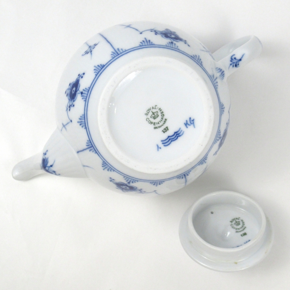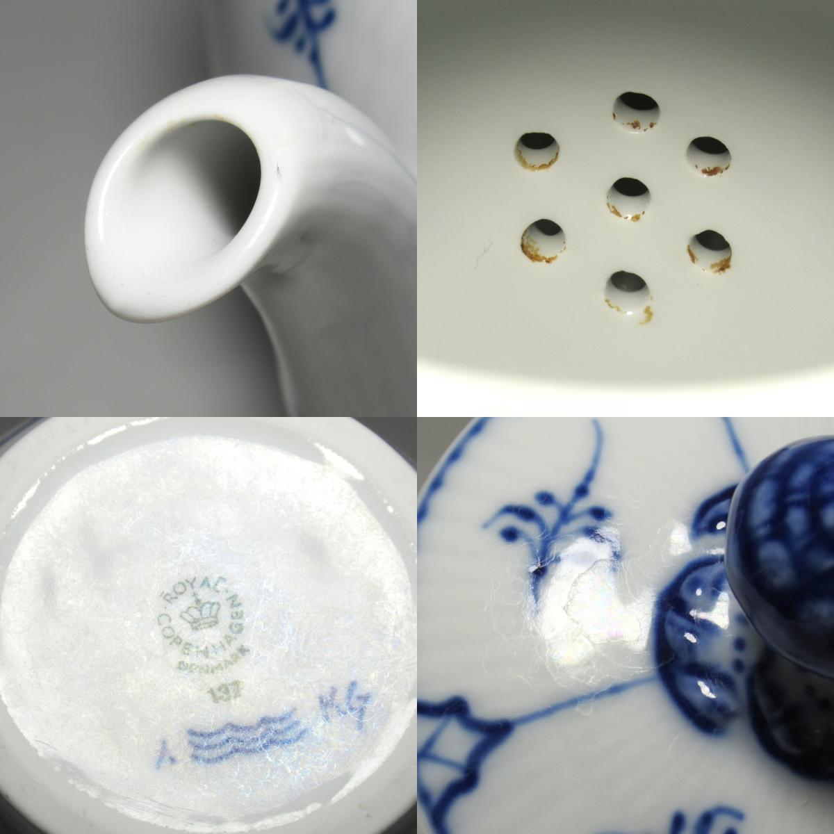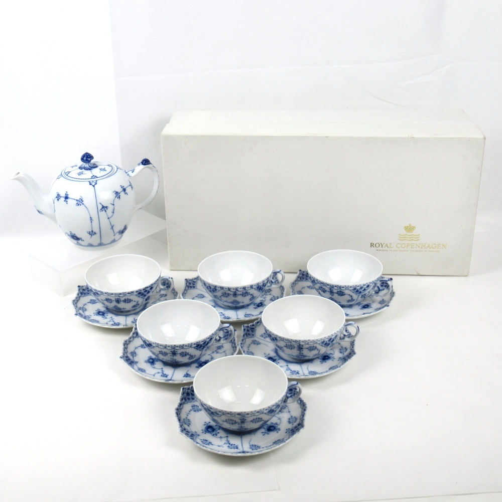 1円〜 Royal Copenhagen ブルーフルーテッド フルレース ティーカップ&ソーサー 6客/プレイン ティーポット 1点 計13点 一部箱付 4238206
