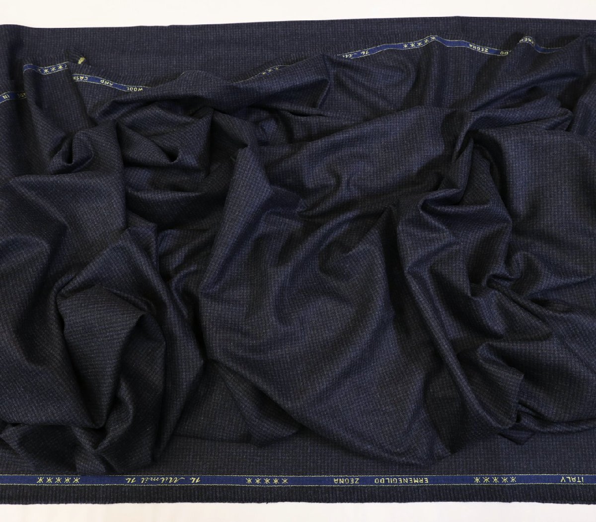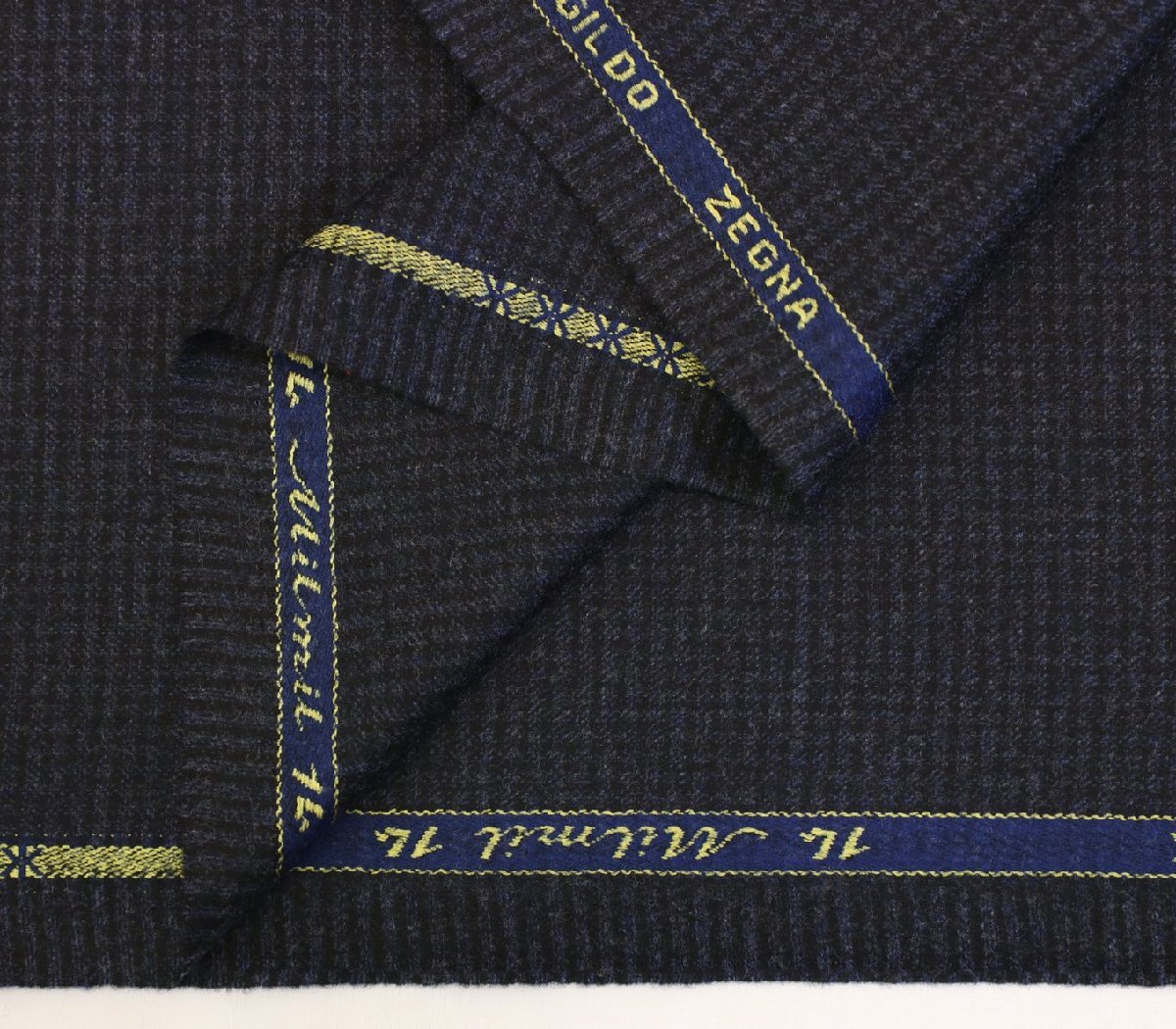 ■イタリア「ゼニア」最高峰14ミルミル・超絶心地良い肌触り・冬用ミルドウース生地・やや濃いめブルーグレーにギンガムチェック風・3.25m