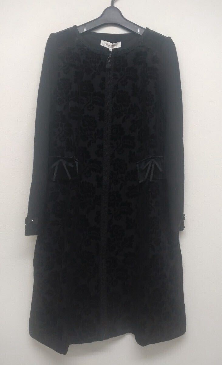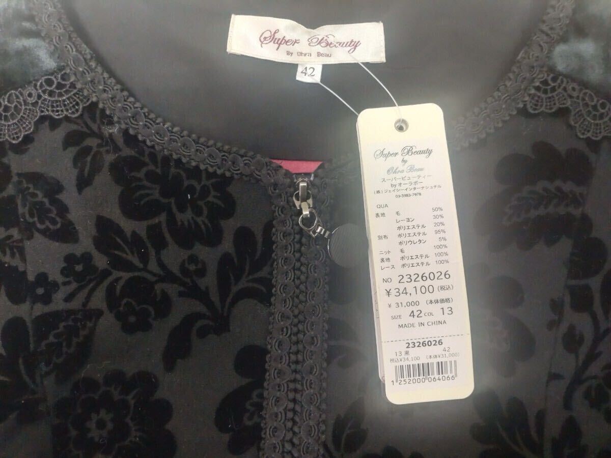 スーパービューティー 袖ニット前開きワンピース サイズ42号 BK