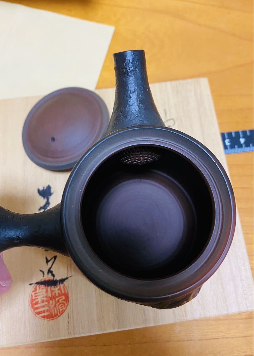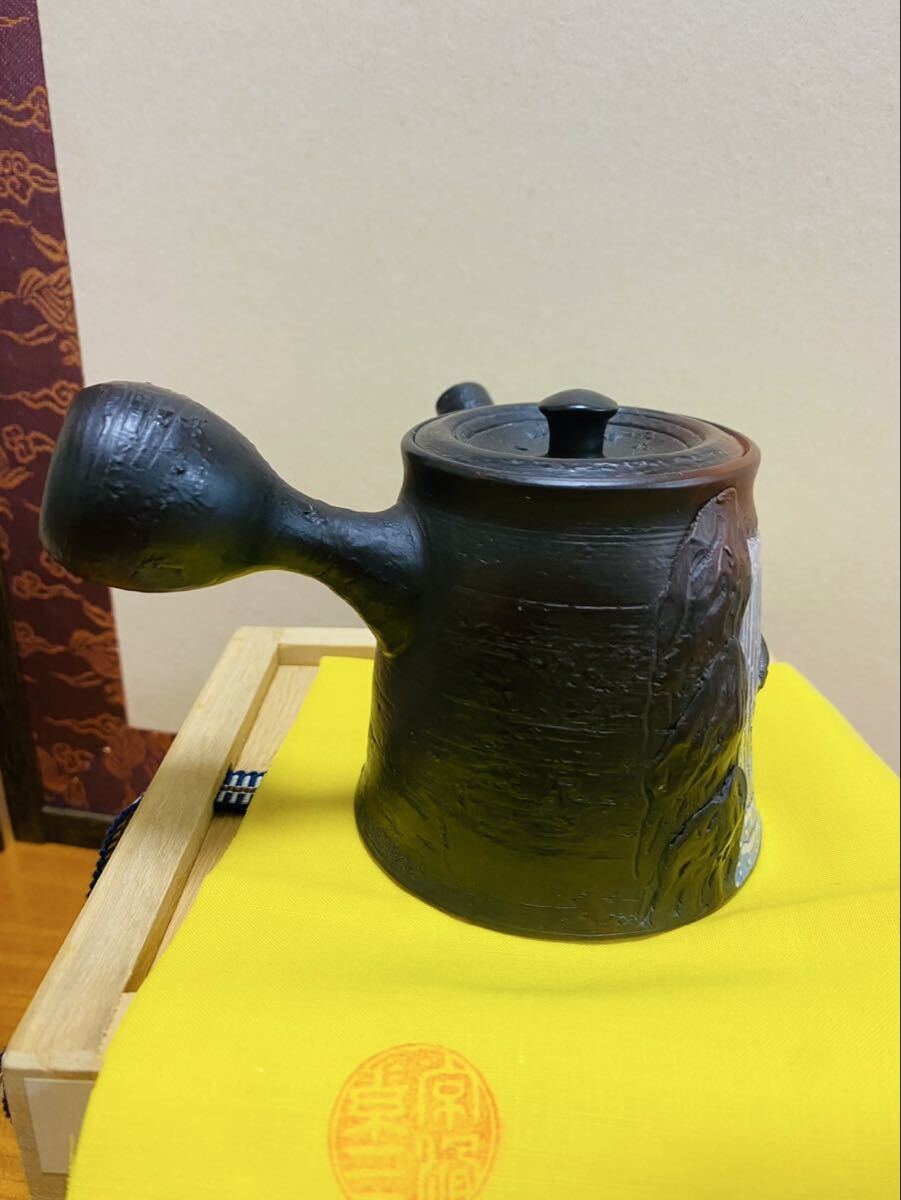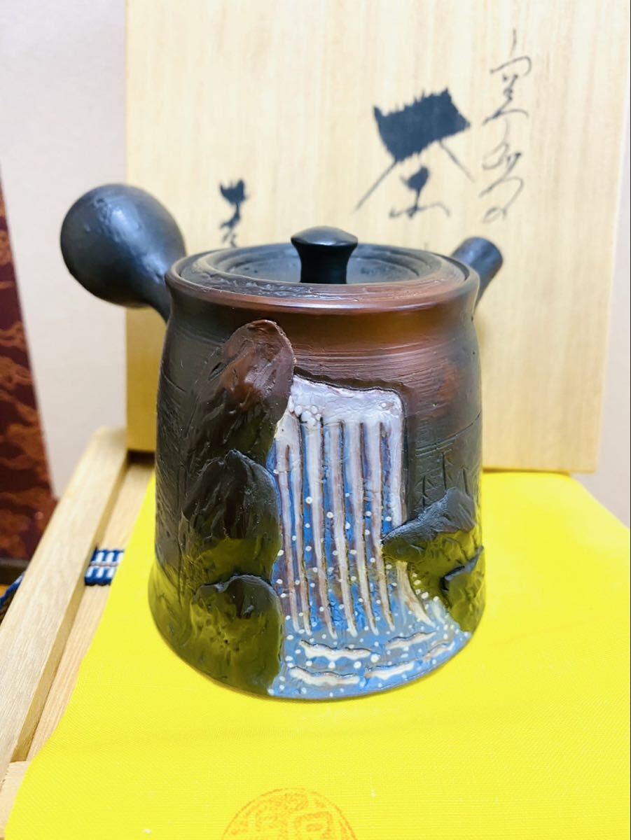 Product name: 急須 常滑焼 不識庵 四代目素三 亀岡克史 変滝彫急須 茶道具 茶注 茶器 煎茶道具 共布 黒泥